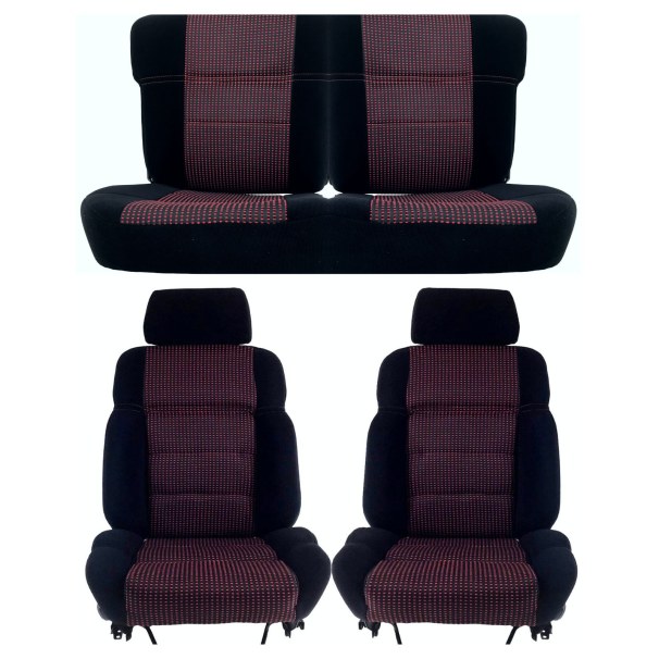 Vollsitze Sitzbezüge aus Schwarz und roter Quartettstoff kompatibel mit Peugeot 205 GTI Sitze