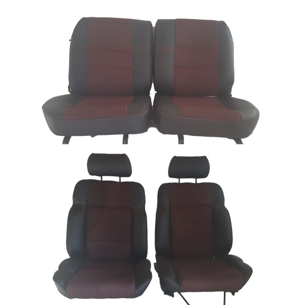 Grey leather and red fabric Complete Seat covers compatible with Peugeot 205 CTI cabriolet