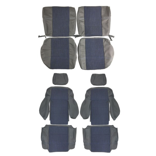 Black leather and blue fabric Seat complete covers compatible with Peugeot 205 GTI