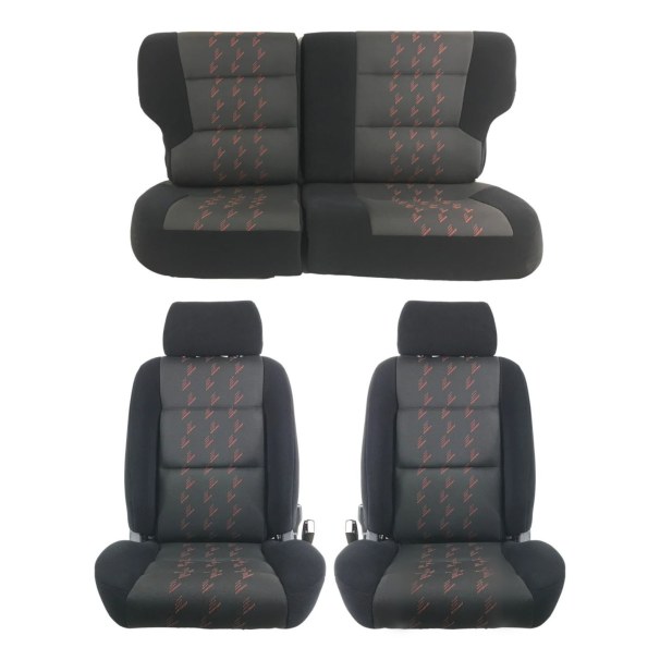 Coprisedili anteriori + posteriori Tessuto a righe rosse al centro e tessuto nero ai lati compatibile con Peugeot 106 Rallye