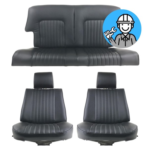 Coiffes sièges Avant + Arrière en cuir noir compatible avec Peugeot 504 cabriolet phase I