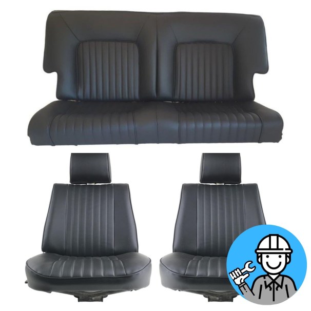 Coiffes sièges Avant + Arrière en simili cuir noir compatible avec Peugeot 504 coupé