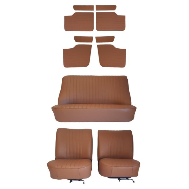 Coiffes de Sièges + Panneaux de Portes avant et arrière en simili caramel compatible avec Renault R 8 sans fermeture éclair