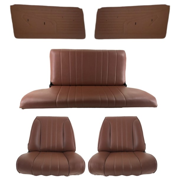 Coiffes Sièges Avant et Arrière + Panneaux de Portes en simili cuir marron foncé compatible avec Peugeot 204 / 304 Coupé