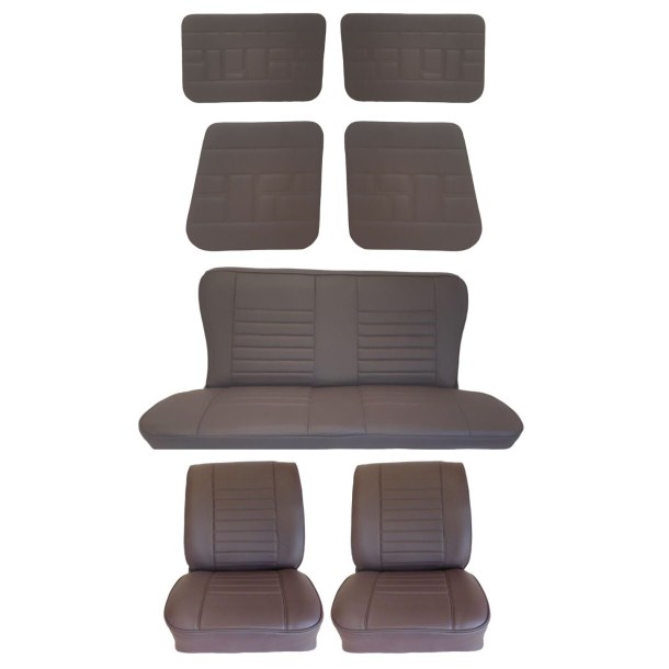 Coiffes Siège Avant et Arrière + Panneaux de Portes en simili cuir marron compatible avec Renault 4 L à partir 1980