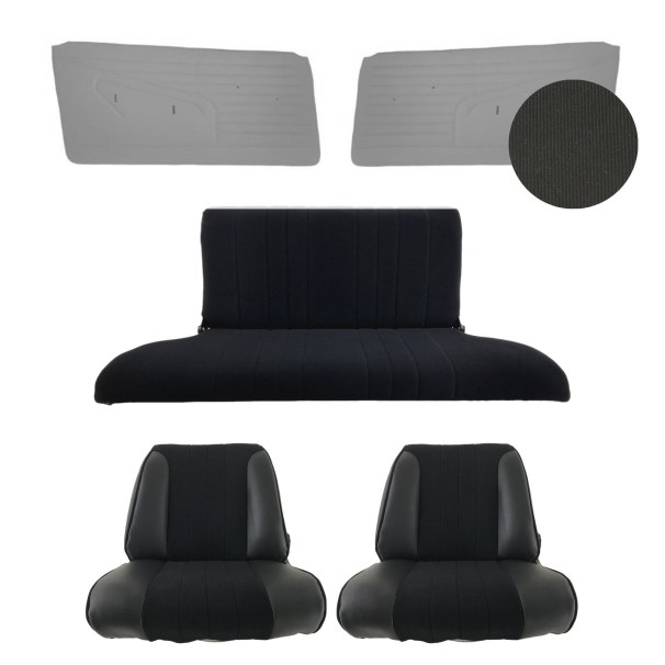 Coiffes Sièges Avant et Arrière + Panneaux de Portes en tissu côtelé et simili cuir noir compatible avec Peugeot 204 / 304 Coupé