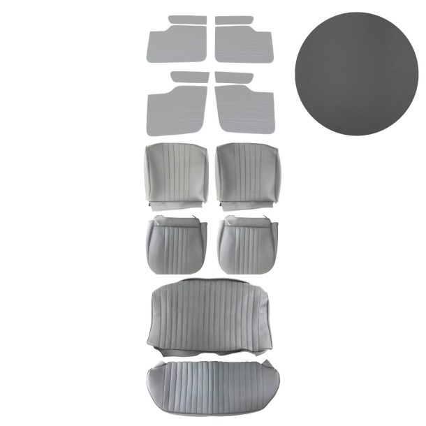 Coiffes de Sièges et Panneaux de Portes avant et arrière en simili gris anthracite compatible avec Renault R 8 sans fermeture éclair