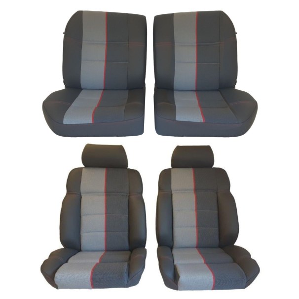 Coiffes Sièges Avant et Arrière en cuir gris anthracite et tissu Ramier compatible avec Peugeot 205 CTI cabriolet
