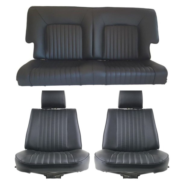 Coiffes sièges Avant + Arrière en simili cuir noir compatible avec Peugeot 504 coupé