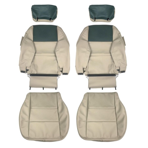 Coiffes Sièges Avant en cuir beige et vert compatible avec Peugeot 306 cabriolet version Roland Garros