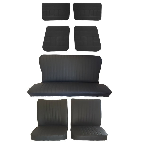 Coiffes Sièges Avant et Arrière avec quatre panneaux de Portes Simili cuir noir compatible avec Renault 4 L avant 1980