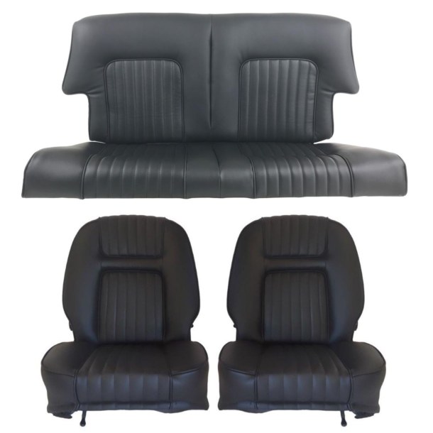 Coiffes Sièges Avant + Arrière cuir noir compatible avec Peugeot 504 cabriolet phase I