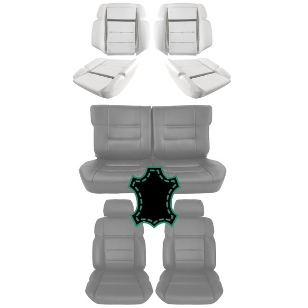 Coiffes et Mousses de Sièges avant et banquette arrière en cuir noir couture verte compatible avec Peugeot 205 GTI