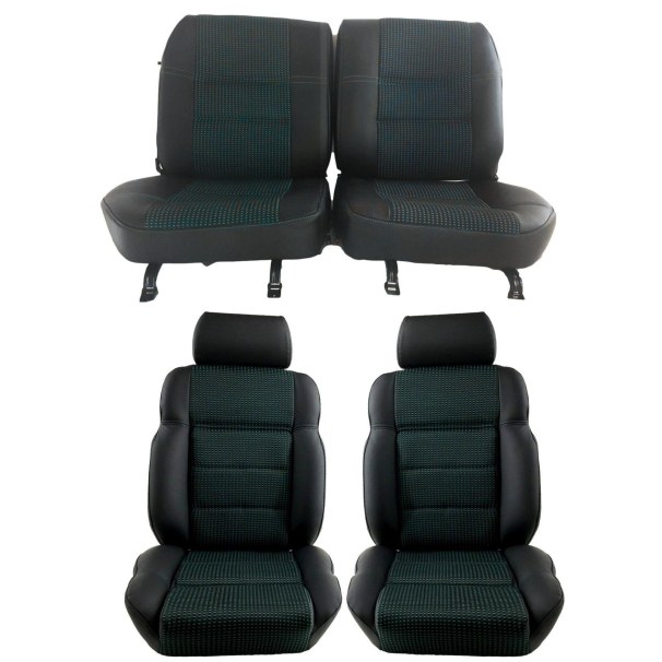 Coiffes Sièges Avant et banquette arrière en cuir noir tissu quartet vert compatible avec Peugeot 205 CTI cabriolet