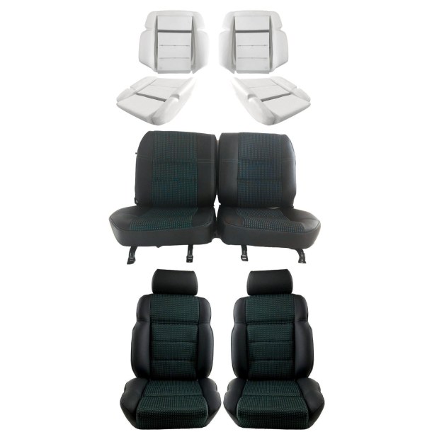 Coiffes et mousses de Sièges Avant et banquette arrière en cuir noir tissu quartet vert compatible avec Peugeot 205 CTI cabriolet