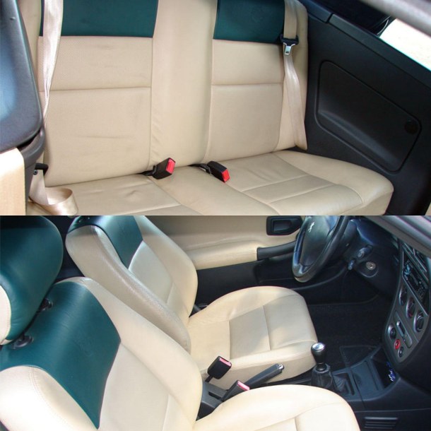 Coiffes Sièges Avant et Arrière en cuir beige et vert compatible avec Peugeot 306 cabriolet version Roland Garros
