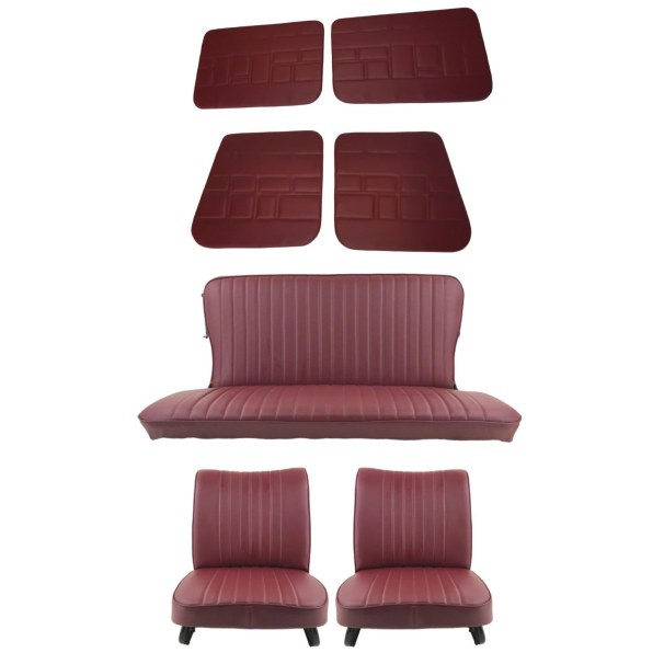 Coiffes Sièges avant et arrière avec panneaux de portes en simili cuir bordeaux compatible avec Renault 4 L avant 1980