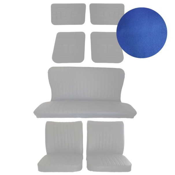 Coiffes Sièges avant et arrière avec panneaux de portes en simili cuir bleu aspect jeans compatible avec Renault 4 L avant 1980