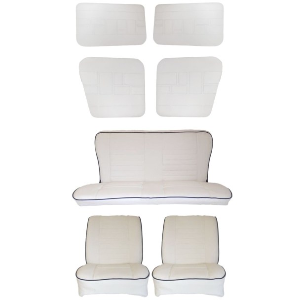 Coiffes Sièges Avant et Arrière + Panneaux de Portes simili cuir blanc compatible avec Renault 4 L à partir de 1980