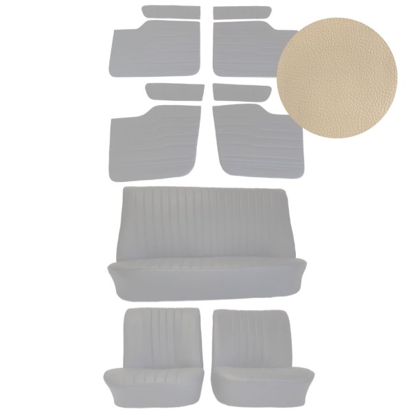 Coiffes de Sièges + Panneaux de Portes avant et arrière en simili beige compatible avec Renault R 8 avec fermeture éclair