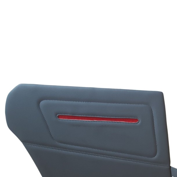 - Simili cuir noir tissu rouge, avec toutes coutures apparentes en fil noir.