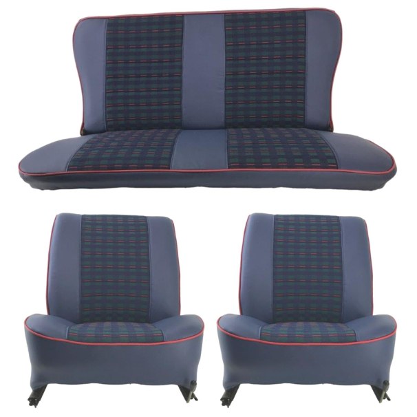Capas de bancos completas Tecido escocês e couro sintético azul compativel com Renault 4 L ≥ 1980